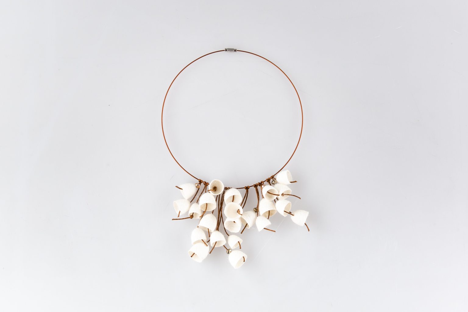 Fasten this eye-catching necklace atop your outfit to create a stunning ensemble that will have everyone talking. This necklace is impressive in size and original too, handcrafted as it is from silk cocoons from the Soufli region in Greece.