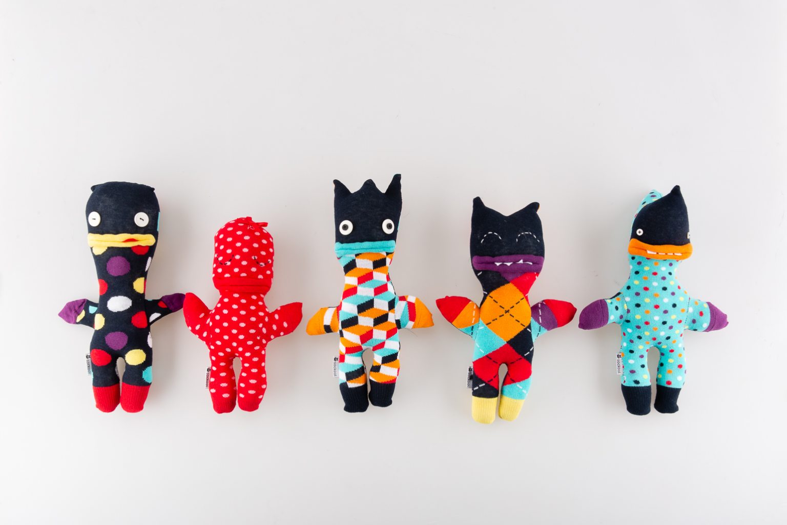 A sock that looks like a creature? Welcome to the world of "sock soft-toys" where every sock is transformed into a quirky creature, complete with a name and a personality! Suitable for young children as it encourages role-playing, a sock soft toy may be offered to an older child (even an adult!) to keep him/her company during study time or work. Where is beloved Dinoman heading? Just look at the eyes of this special soft toy and you will find the perfect person to gift it to!