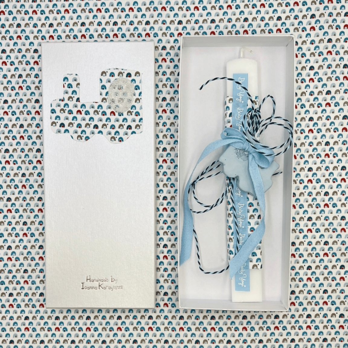 A beautiful "lambada" [Easter candle], made of high quality wax, for the Midnight Easter Liturgy. Decorated with a crown, it is a great choice for our little boys!