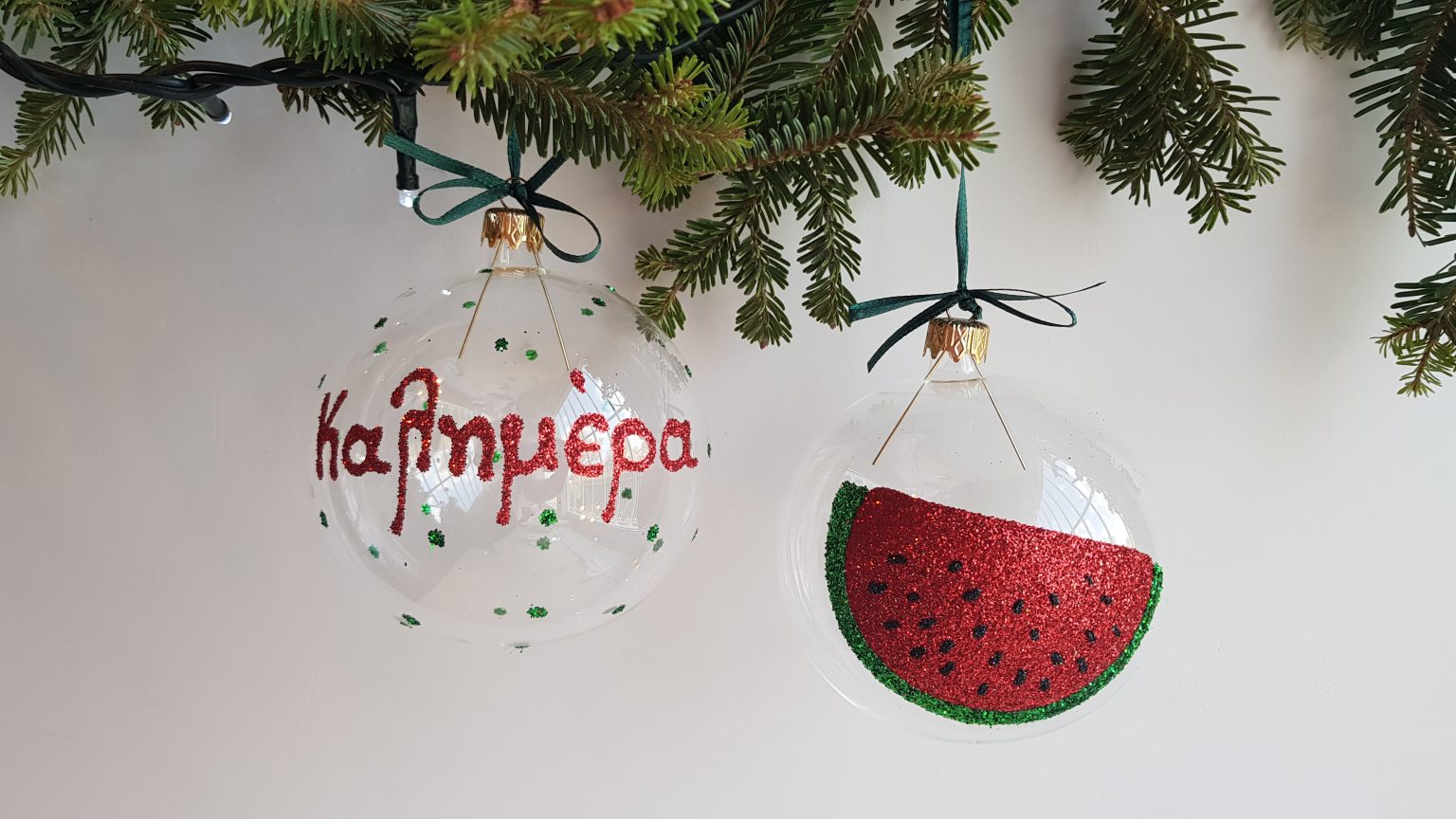 Two special handmade balls that exude a sense of freshness and vitality! Decorated one with watermelon and the other with the word "Καλημέρα" in bright and cheerful colors! A wonderful gift suggestion for friends that will delight!