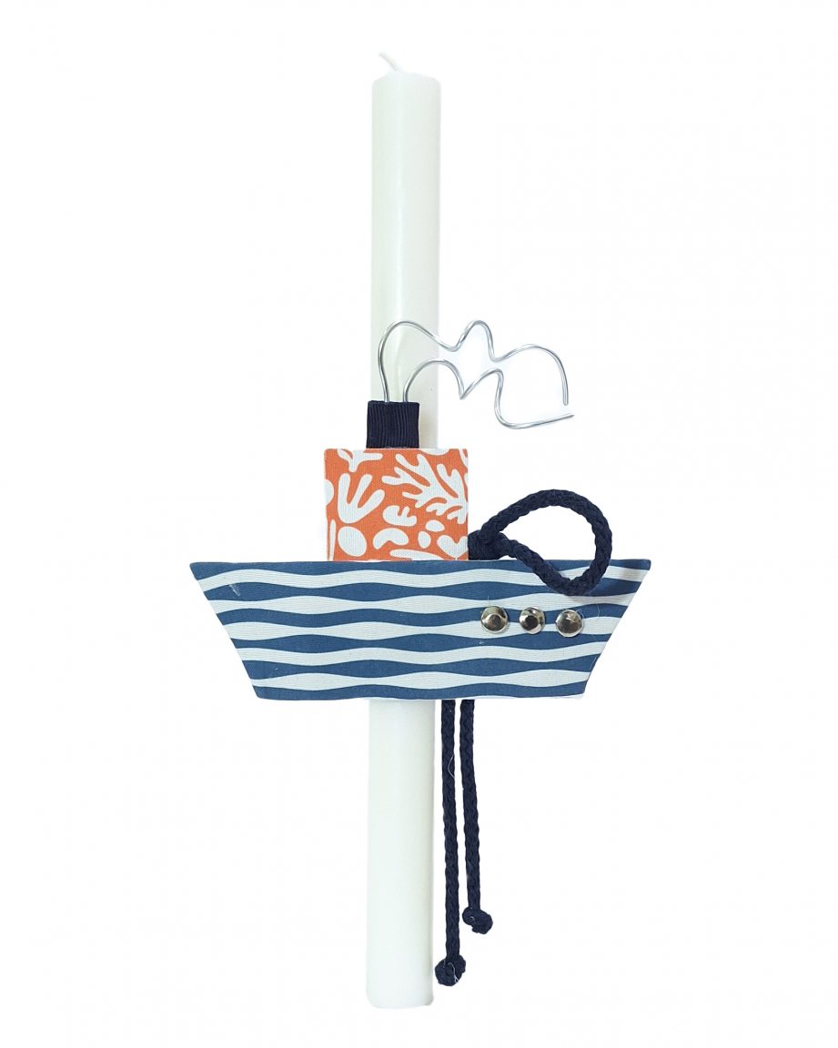 Τhe iconic Greek little boat now decorating the elegant Easter candle! A great gift idea for school-aged boys!