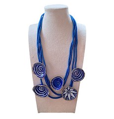 Blue, gold & silver satin necklace