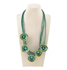 Long necklace with green papier-mâché flowers