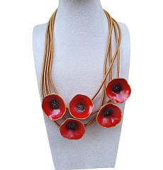 Long necklace with papier-mâché poppies